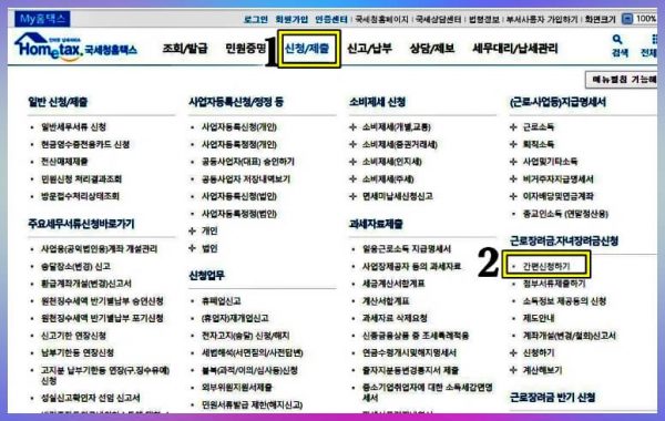 3) 신청/제출 근로장려금·자녀장려금 신청 및 조회, 사업자등록 신청, 일반 세무서류 신청, 송달장소 변경, 전자고지 신청/해지 등.